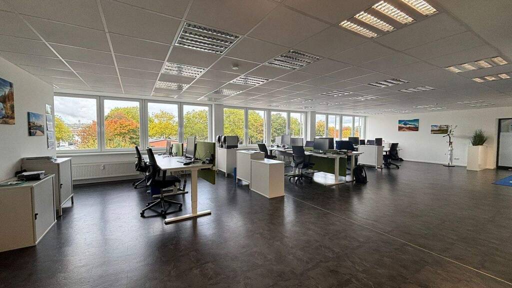 Die Büroetage verfügt über ein großzügiges Großraumbüro, zwei Besprechungsräume sowie einen offenen Mitarbeiterbereich mit einer kleinen Teeküche. Zudem sind separate Damen- und Herrentoiletten vorhanden. Im hinteren Bereich der Einheit befindet sich ein abgetrennter Bereich mit einem Server-Rack. Ein Kellerraum steht Ihnen ebenfalls zur Verfügung und bietet zusätzlichen Stauraum.