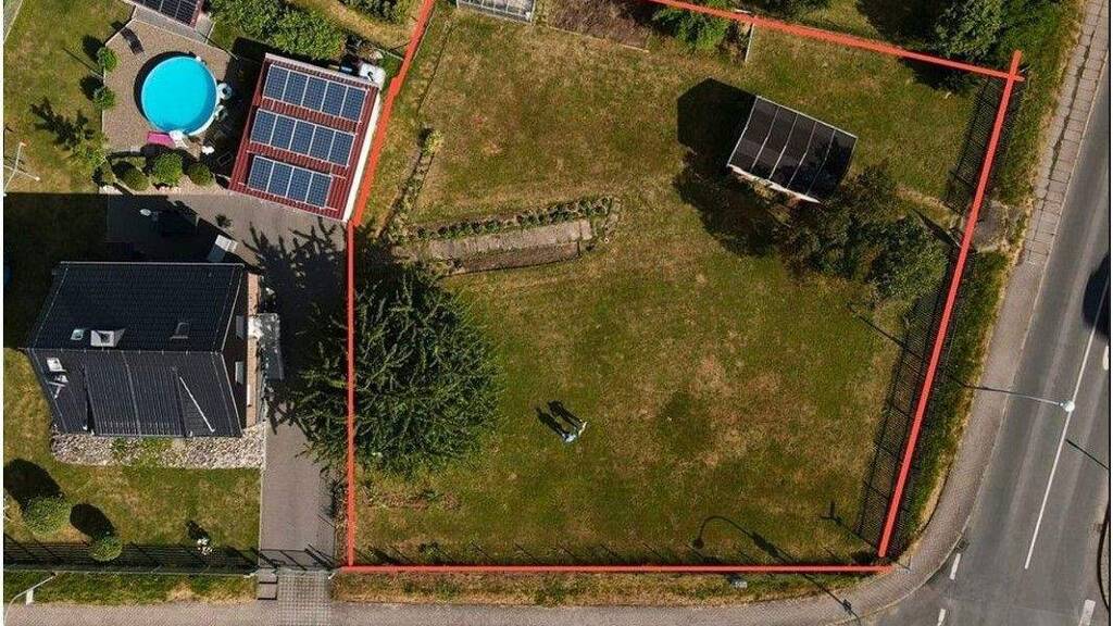Optimaler Schnitt: Nahezu quadratisches Eckgrundstück, bereits vollständig eingezäunt.