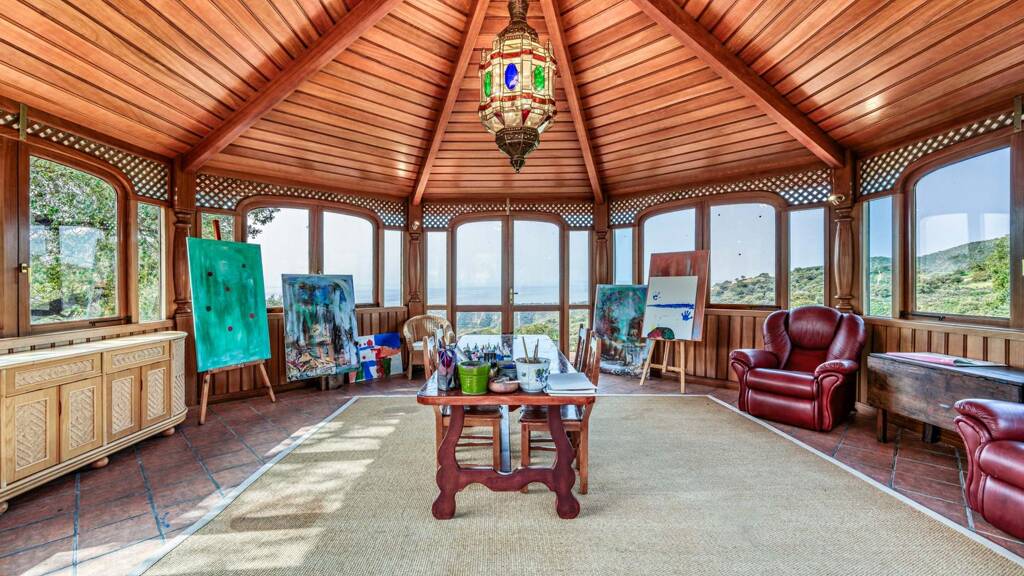 Das Anwesen ist von einem tadellos gepflegten Garten mit Obstbäumen, ausgewachsenen Pflanzen, Teichen, anmutigen Brunnen, Skulpturen und ruhigen Wasserspielen umgeben. Außerdem gibt es ein kleines Haus mit 360-Grad-Panoramablick, das als spezieller Raum zum Malen oder für Hobbys dient.