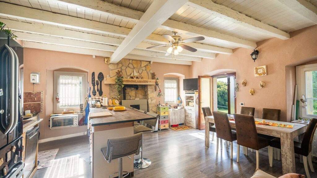 Im Erdgeschoss befindet sich ein wunderschöner, restaurierter Keller aus der damaligen Zeit, der sich perfekt für die Lagerung von Weinen oder als charakteristischer Raum zur Aufwertung eignet. Von derselben Ebene führt eine Treppe ins Innere des Hauses, das sich mit einer Wohnküche öffnet, die sich durch ein originales rustikales Waschbecken auszeichnet, ein authentisches und sehr reizvolles Element, sowie durch den gemütlichen und hellen Essbereich.