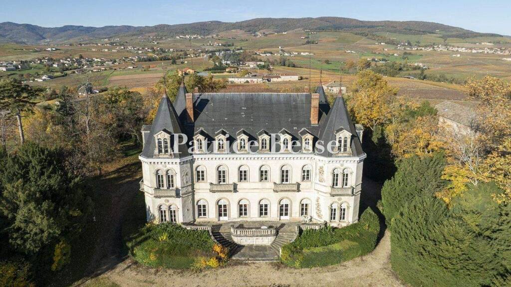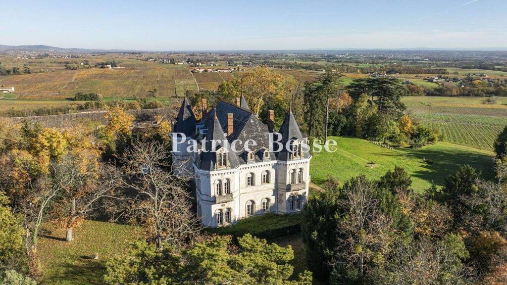 An 1850s mansion, with a wine store and estate keeper's house, in 2 hectares of landscaped grounds, 45 minutes from Lyon, on top of a hill in the Beaujolais vineyards.