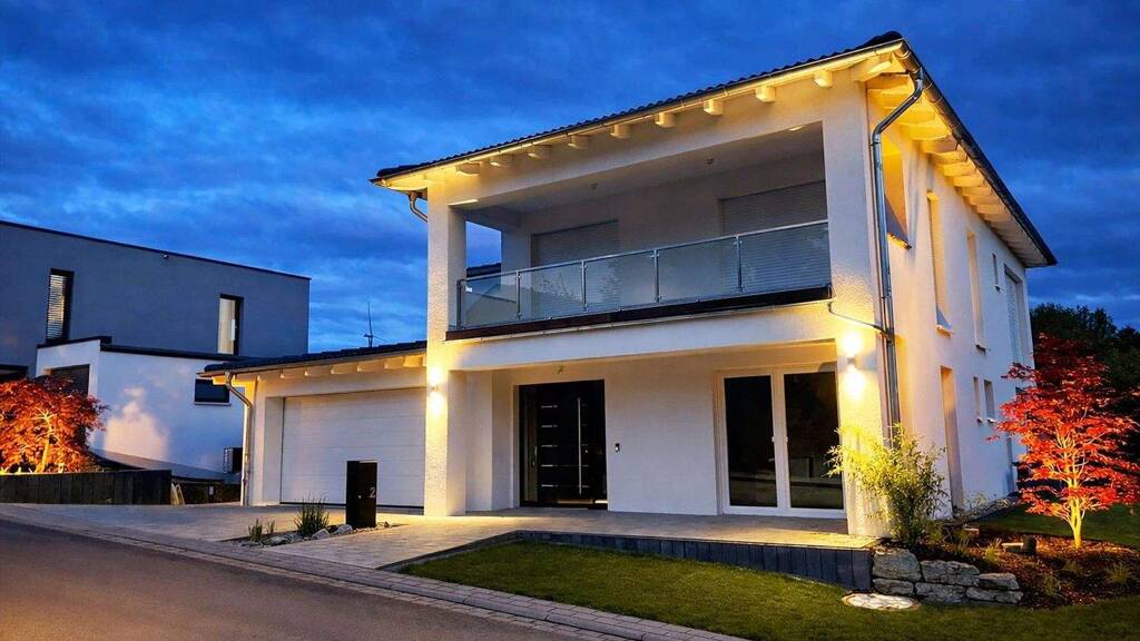 Ein besonderes Highlight ist die aufwendig gestaltete Designer-Außenanlage mit terrassiert angelegtem Gartenkonzept. Mehrere Ebenen verbinden Architektur und Landschaft zu einem stimmigen Gesamtbild. Drei Terrassen - darunter eine großzügige Bangkirai-Terrasse - bieten unterschiedliche Aufenthaltsbereiche mit optimaler Sonnenausrichtung. Ein stilvolles Wasserspiel, Smart-Beleuchtung, eine gewachsene Heckenstruktur sowie hochwertige Bepflanzungen mit Gräsern, Lavendel und weiteren ausgewählten Pflanzen schaffen eine ruhige, elegante Atmosphäre und unterstreichen den exklusiven Charakter der Immobilie. Ein integriertes Tropfbewässerungssystem sorgt für komfortable und nachhaltige Gartenpflege.