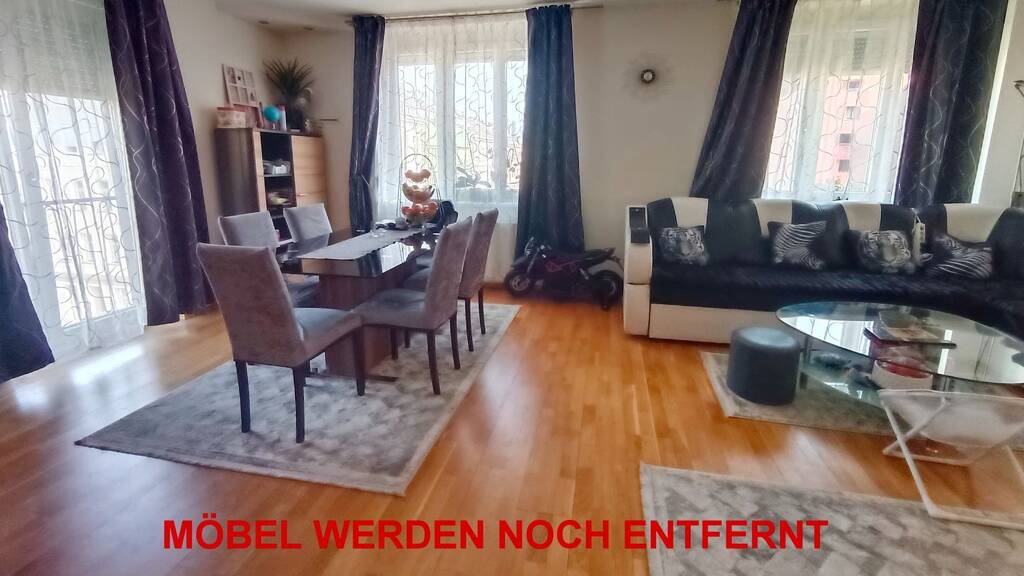 Das sonnige Apartement ist mit Echtholzparketten verlegt. Die Thermofenster sind mit Aussenjalousien ausgestattet. Ein Kellerabteil bietet zusätzlichen Stauraum. Die auf den Fotos ersichtliche Möblierung wird noch entfernt.