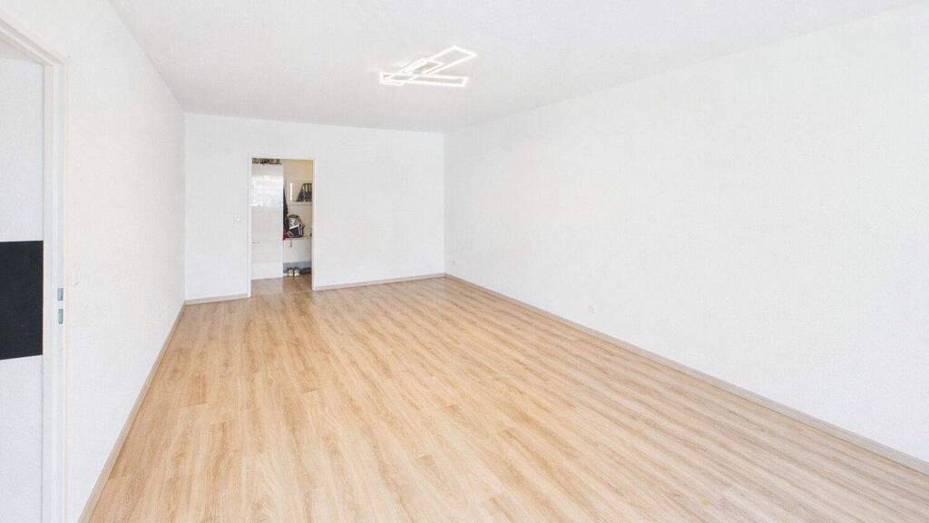 Beim Betreten der Wohnung gelangt man in den ersten Flur. Von hier aus sind das großzügige Wohnzimmer, das separate WC sowie die Küche zugänglich. Das großzügig geschnittene und lichtdurchflutete Wohnzimmer bildet den einladenden Mittelpunkt der Wohnung und bietet einen direkten Zugang zum Balkon.