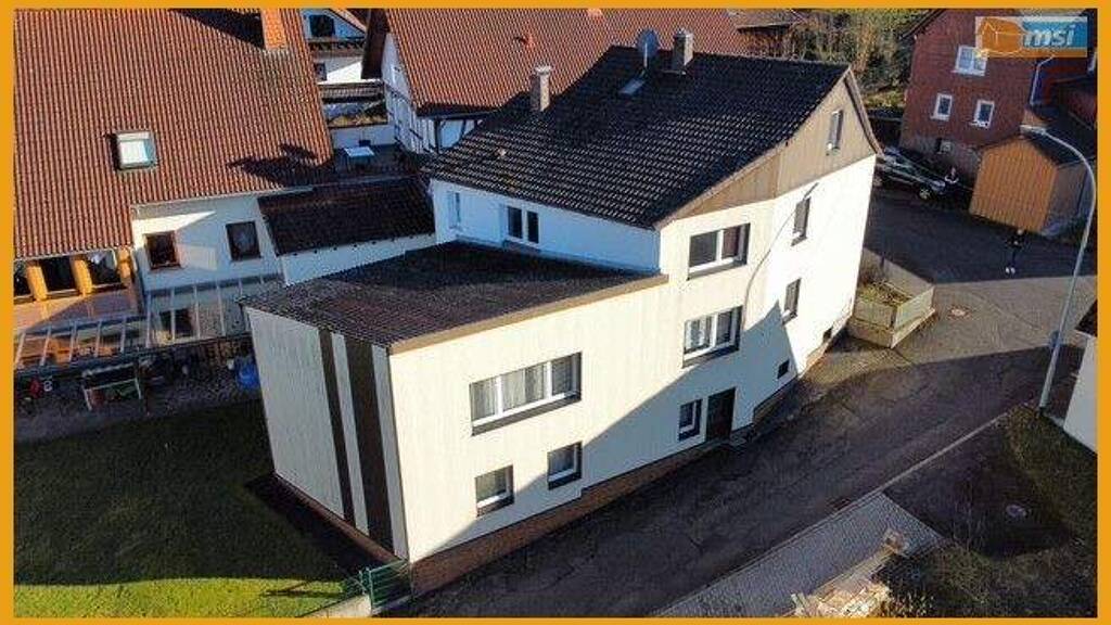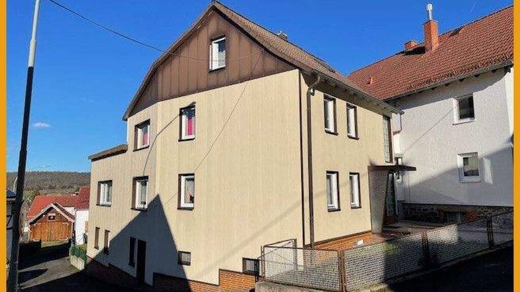 Diese 1-2 Familienhaus bietet Ihnen viel Raum Ihre Ideen in die Tat umzusetzen. Die Immobilie wurde ursprünglich in den 40er/50er Jahren erbaut und in 1970 um einen Anbau erweitert. Aktuell finden Sie im Erdgeschoss des Hauses ein Schlafzimmer, die Küche mit Essplatz, ein großes Wohnzimmer sowie ein kleines, hell gefliestes Bad mit ebenerdiger Dusche, welches in 2019 erneuert wurde. Die zweite Etage könnte als separater Wohnbereich genutzt werden, da diese ebenfalls ein Schlafzimmer, Wohnzimmer, Küche und Badezimmer im Stile der 70er Jahre beherbergt. Zudem steht ein ausgebauter Raum im Dachgeschoss zur Nutzung bereit. Durch den Vollkeller haben Sie auch in der untersten Etage viel Platz und Möglichkeiten. Hier finden Sie unter anderem mehrere Abstellräume, den Heizungsraum und Öllager sowie eine weitere Duschmöglichkeit und WC. Auf einem Grundstück direkt gegenüber befinden sich ein Nebengebäude mit integrierter Garage und Werkstatt sowie ein Carport für ihren Pkw.