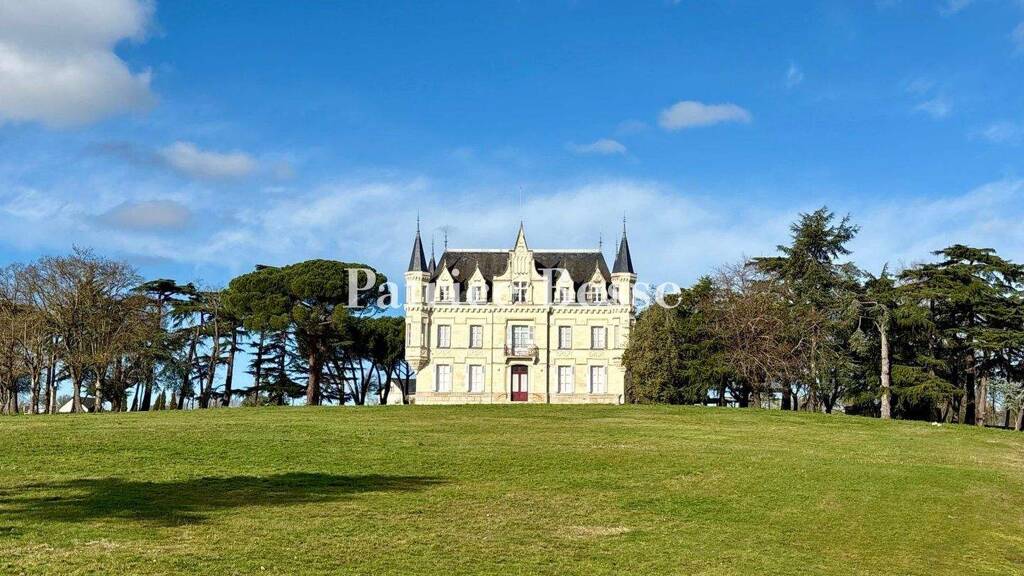 From the road, a long drive winds through the grounds to the front of the chateau and then to a series of outbuildings, including one directly connected to the edifice. The property can also be reached at the rear via a lane from the village. All the buildings are located in the middle of more than 7 hectares of grounds. The tuffeau stone-built, four-storey chateau, including the basement and attic levels, was erected in the 19th century on hard stone foundations. It is topped by a slate hipped roof, which is surrounded by a modillion cornice and punctuated, at the front and rear, by neo-Gothic inspired dormers, including an imposing central dormer. At each corner of the chateau, there are turrets on finely crafted bases and topped with pepper-pot roofs. The facades are graced with moulded stringcourses and sculpted, X-shaped decorations beneath the windows on the first floor. All the windows are perfectly symmetrical and on the south-facing front facade, the entrance door is topped by a balcony, which has a wrought-iron guard-rail, supported by two rams boasting griffin's claws. The chateau underwent significant restoration work between 2006 and 2008.