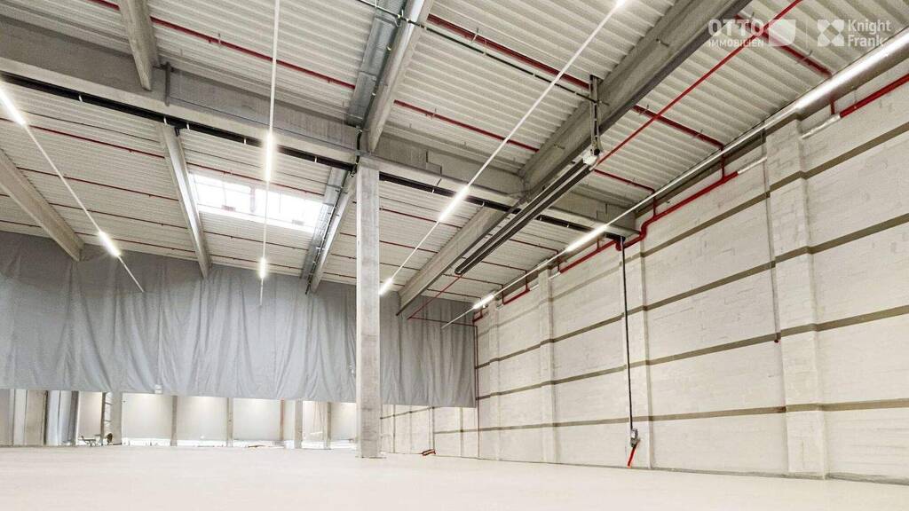 Die Halle besticht durch ein modernes Layout sowie 12 m lichte Innenhöhe und einem großzügigen Ladehof mit 6 Anpassrampen sowie einem großen ebenerdigen Ladetor mit Auffahrtsrampe. Die Sozialräume befinden sich im Erdgeschoß, die Büros und Besprechnungszimmer im Obergeschoß und sind zweckmäßig und modern ausgestattet.