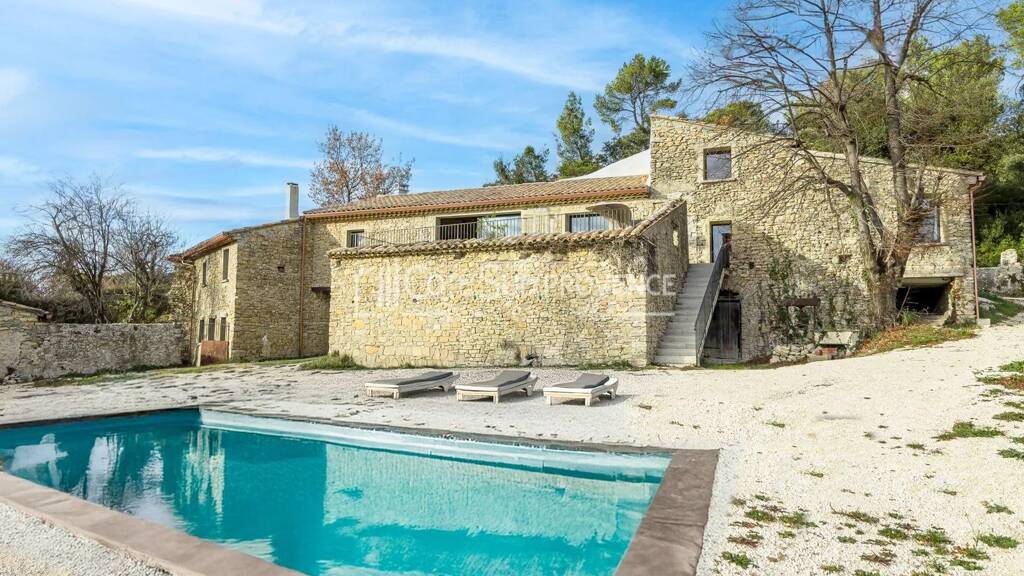 In absoluter Ruhe, 5 Minuten von Vaison-la-Romaine entfernt, Mas von ca. 200 m², vollständig renoviert, mit Pool und natürlicher Quelle, in einer unberührten Naturlandschaft mit großem Potenzial. Grundstück von ca. 11.000 m², bepflanzt, mit zahlreichen Nebengebäuden und troglodytischen Höhlen - ideal für Spa, Wein- oder andere Aktivitäten. Möglichkeit, bis zu 3 Chalets mit Ausstattung (Pool/Whirlpool) zu errichten. Seltene Vorteile: natürliche Quelle, direkter Zugang zum Fluss L'Ouvèze, ruhige Umgebung und ein atemberaubender Blick auf den Mont Ventoux.