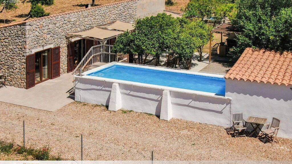 In der idyllischen Landschaft nahe des charmanten Ortes Campanet liegt dieses wunderschöne Anwesen auf einem rund 3.900 m² großen Grundstück, umgeben von mediterraner Ruhe und zahlreichen Oliven-, Orangen-, Zitronen- sowie einem Pflaumenbaum. Das kleine, liebevoll gestaltete Eco-Häuschen verbindet mallorquinischen Charakter mit modernem Wohnkomfort und eignet sich ideal als privater Rückzugsort oder renditestarkes Ferienobjekt. Die Finca verfügt über zwei gemütliche Schlafzimmer, jeweils mit eigenem Badezimmer, ein einladendes Wohnzimmer mit Kamin und eine elegante, offen gestaltete Küchenzeile. Vor dem Haus befindet sich eine wunderschöne Terrasse, die zu langen Sommerabenden und entspannten Stunden im Freien einlädt. Besonders hervorzuheben ist der in einen stilvollen Pool umgebaute ehemalige Wassertank, der in den warmen Monaten für angenehme Abkühlung sorgt. Im Außenbereich stehen zudem ein kleiner Raum für die Waschmaschine sowie ein praktisches Werkzeuge-Häuschen zur Verfügung, was den Alltag erleichtert und zusätzlichen Stauraum bietet. Das Haus wird nachhaltig über Solarenergie betrieben, während ein städtischer Wasseranschluss für zuverlässige Versorgung sorgt. Alle Gebäude sind legal errichtet und verfügen über sämtliche Genehmigungen und vollständige Dokumentationen. Ein bedeutender Mehrwert ist die gültige Ferienvermietungslizenz, die diese Immobilie nicht nur besonders attraktiv macht, sondern auch nachweislich hervorragende Einnahmen während der Sommersaison ermöglicht. Dieses Anwesen bietet eine seltene Kombination aus Natur, Ruhe, modernem Komfort und wirtschaftlichem Potenzial - ideal als Zweitwohnsitz und zugleich als sicheres Investment auf Mallorca.