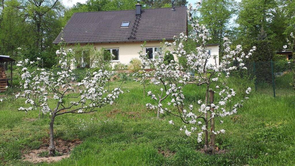 Das Objekt liegt in einer sehr ruhigen Sackgasse an deren Ende ein Landschaftsschutzgebiet beginnt. Das Grundstück hat eine Nord - Süd Ausrichtung mit einer Fläche von 1098 m² , 22m Straßenfront, ist nach hinten leicht abfallend, sehr ruhig und sonnig gelegen. Das Wohnhaus wurde im Jahre 2003 neu gebaut. Es ist ein 1,5 geschossiges Gebäude mit Bodenplatte in Massivbauweise und mit Kehlbalkendach. Wohn- und Dachgeschoss sind vollständig ausgebaut und können als gemeinsamer Wohnraum oder als zwei getrennte Wohnungen genutzt werden. Die Nutzfläche im Wohnhaus beträgt insgesamt 176 m², die Gesamtwohnfläche 139 m². In einem Wohnzimmer ist ein Kaminofen.