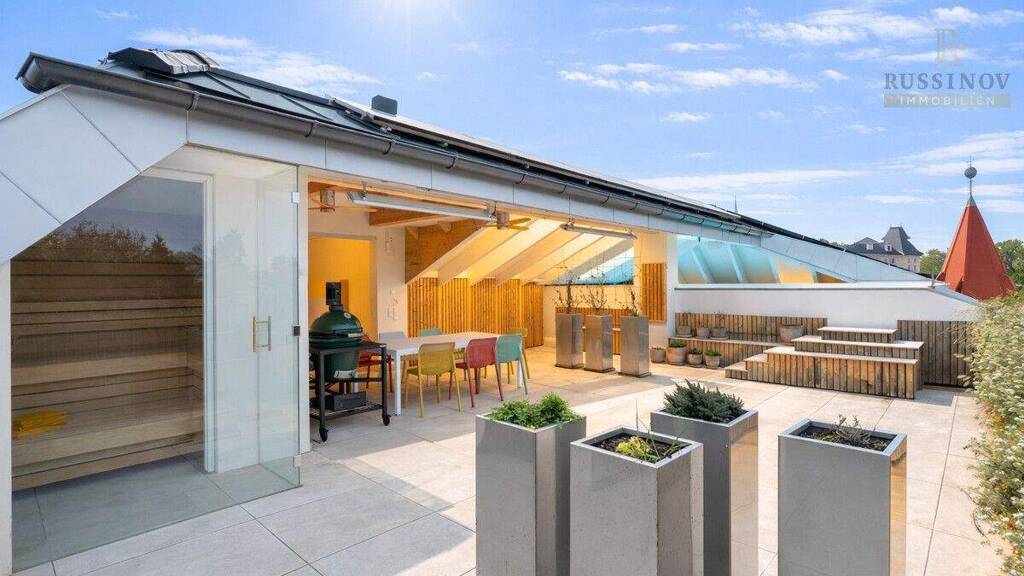 Das Dachgeschoss überzeugt mit einer außergewöhnlichen Lifestyle-Ebene samt Pool, Sauna und Outdoor-Küche.