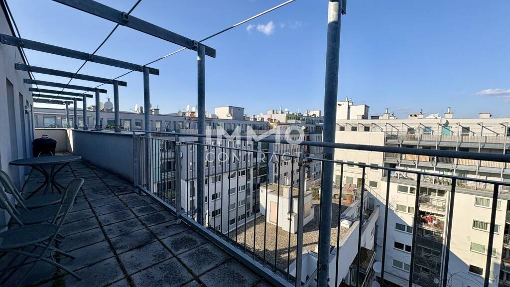 Diese großzügige und bestens aufgeteilte 2-Zimmer-Wohnung befindet sich im letzten Liftstock eines gepflegten Wohnhauses und überzeugt vor allem durch ihre außergewöhnliche 27 m² große Terrasse (Richtung Innenhof) - ein echtes Highlight, das von allen Zimmern aus direkt begehbar ist und zu ruhigen und entspannten Stunden im Freien einlädt.