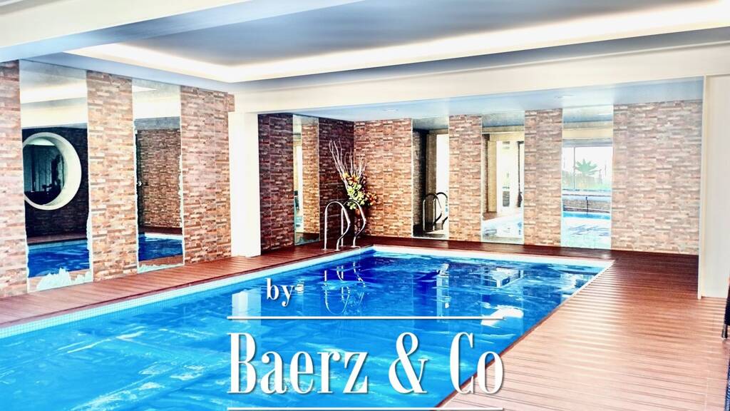 - indoor swimming pool heated with solar panels and heat pump for year-round use