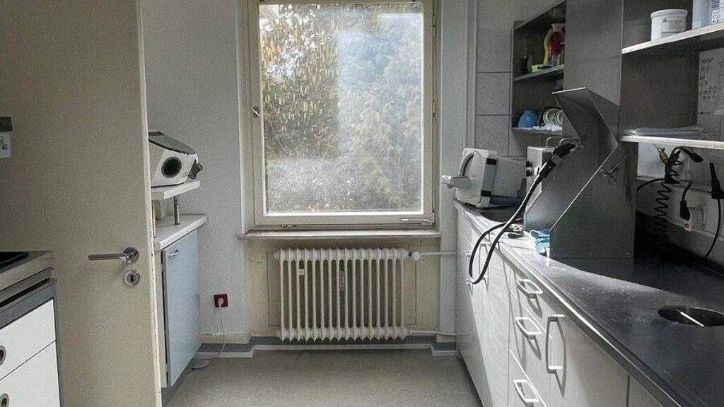 Das 1. Untergeschoss ist an ein Dental-Labor vermietet (ca. 115 Quadratmeter, seit 2009). Hier gibt es 5 Zimmer und ein Gäste-WC sowie drei unterschiedlich große Abstell- bzw. Lagerräume.