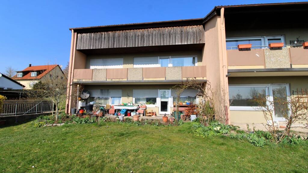 Im Außenbereich stehen unter anderem Garagen sowie gemeinschaftliche Flächen zur Verfügung. Insgesamt handelt es sich um eine solide Wohnung mit gut geschnittenem Grundriss und Entwicklungspotenzial. Die ruhige Lage im Stadtteil Eyb sowie die vorhandene Terrasse mit Ausblick stellen dabei die wesentlichen Vorzüge dar. Aufgrund der gefragten Wohnlage und der funktionalen Aufteilung eignet sich die Wohnung auch gut als Kapitalanlage mit langfristiger Perspektive.