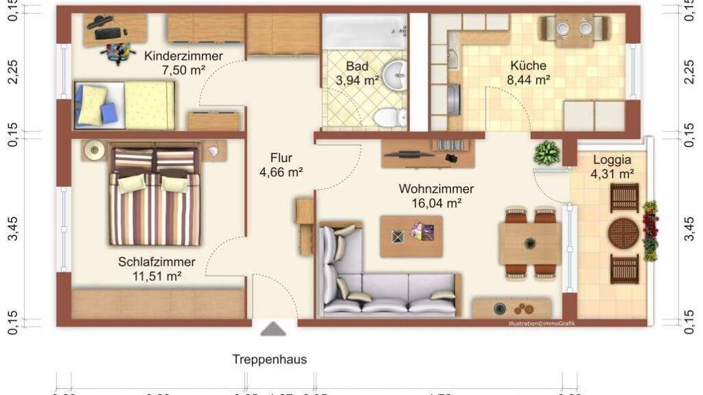 3 Zimmer  •  57,4 m²  •  5. Geschoss