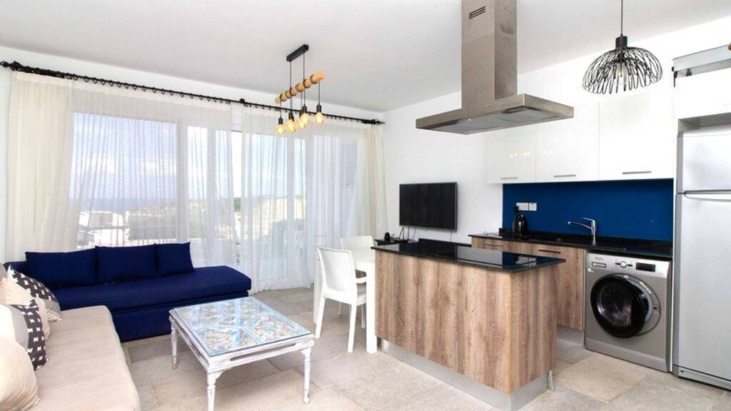 In Bahceli, befindet sich diese faszinierende Erdgeschoss-Wohnung mit einem Schlafzimmer und Blick auf das azurblaue Mittelmeer. Diese Residenz liegt innerhalb einer renommierten Anlage und verkörpert luxuriöses Küstenleben, indem sie modernen Komfort mit atemberaubender natürlicher Umgebung verbindet. Beim Betreten wird man von einem einladenden offenen Wohn- und Küchenbereich begrüßt, in dem die beruhigende Atmosphäre des Meeres nahtlos mit dem eleganten Innendesign verschmilzt. Durch die Terrassentüren gelangen die Bewohner auf eine private Terrasse und einen privaten Gartenbereich, der eine ruhige Oase bietet und perfekt positioniert ist, um den Panoramablick auf das Meer zu genießen. Ob im warmen Morgenlicht oder bei einer abendlichen Brise, die Terrasse verspricht Momente der Gelassenheit vor einer Kulisse schimmernden Wassers. Die Wohnung verfügt über ein Schlafzimmer, das einen Ort des Komforts und der Entspannung bietet. Ein stilvoll gestaltetes Badezimmer vervollständigt das Interieur und bietet sowohl Funktionalität als auch Raffinesse. Ideal für diejenigen, die einen Urlaubsort oder eine kluge Investitionsmöglichkeit suchen, hat dieses Apartment einen immensen Reiz für anspruchsvolle Einzelpersonen. Mit seiner erstklassigen Lage und fesselnden Aussichten verspricht es eine unvergessliche Flucht aus dem Trubel des Alltags. Darüber hinaus bietet sein Potenzial für Ferienvermietungen eine lukrative Möglichkeit für diejenigen, die vom blühenden Tourismusmarkt Nordzyperns profitieren möchten.