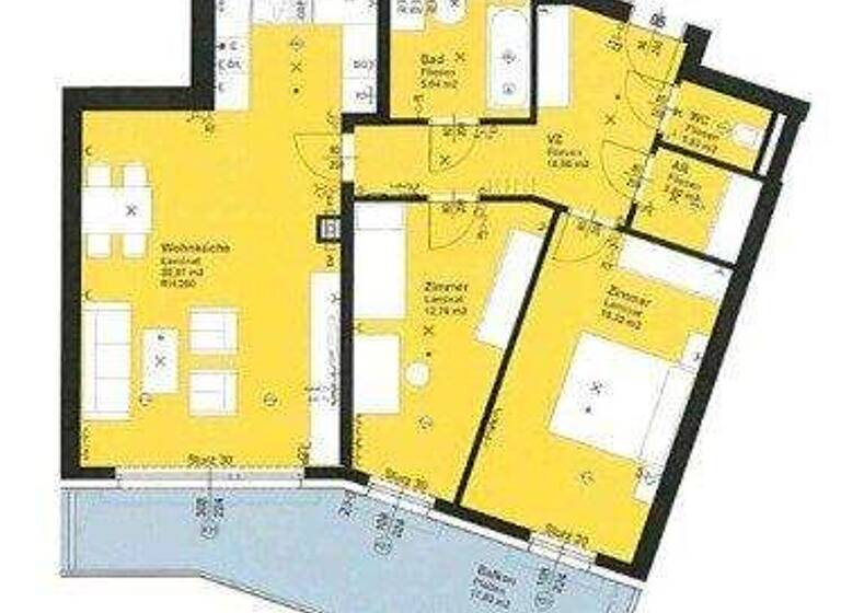 Diese rund 81 m² große 3-Zimmer-Wohnung befindet sich im ersten Stock und bietet einen großzügigen Balkon mit ca. 17,63 m².