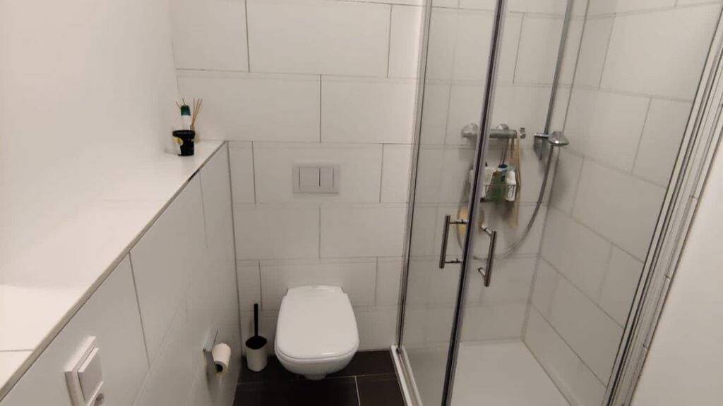 Das Badezimmer verfügt über eine Badewanne. Zusätzlich steht ein separates Gäste-WC mit Dusche zur Verfügung - besonders praktisch für Gäste oder den Alltag zu zweit.