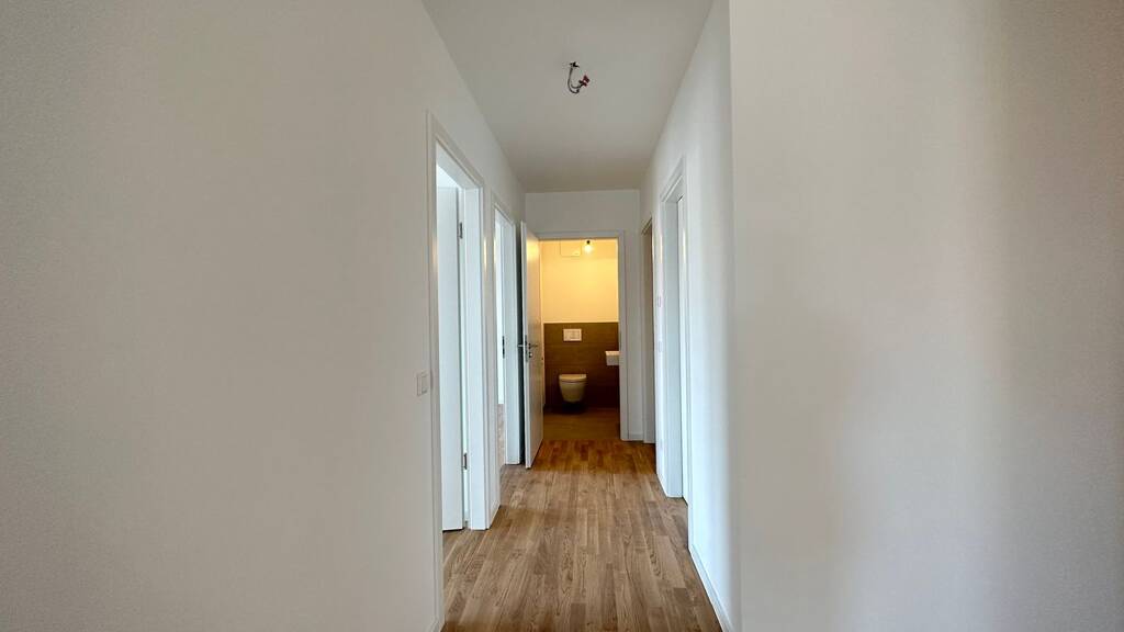 Diese moderne 3-Zimmer-Wohnung mit 97,22 m² Wohnfläche überzeugt durch eine durchdachte Raumaufteilung und eine hochwertige Ausstattung. Der einladende Flur verbindet alle Bereiche der Wohnung. Neben einem voll ausgestatteten Badezimmer steht ein zusätzliches Gäste-WC zur Verfügung. Ein praktischer Hauswirtschaftsraum mit Waschmaschinenanschluss bietet zusätzlichen Stauraum. Zwei großzügige Schlafzimmer ermöglichen vielfältige Nutzungsmöglichkeiten.