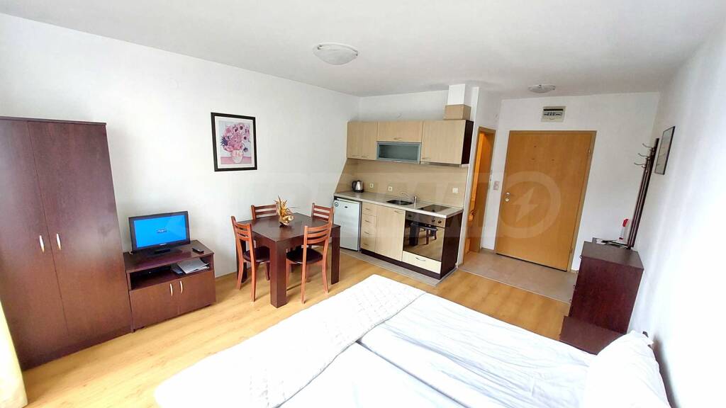 Es besteht aus: ausgestatteter Küche, Flur, Doppelbett, Kleiderschrank, Esstisch, Badezimmer mit Toilette.