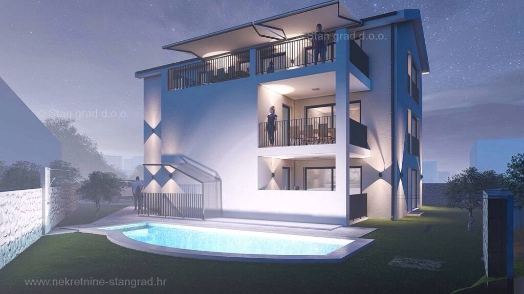 Die Agentur Stan Grad Immobilien hat zwei außergewöhnliche Wohnungen zum Verkauf, die nach einem modernen Projekt im attraktiven nördlichen Adriagebiet der Insel Krk gebaut wurden. Die genannten Apartments befinden sich in einer sehr guten Lage in Malinska, nahe dem Zentrum, dem Meer und allen notwendigen Einrichtungen für einen komfortablen, angenehmen und sicheren Sommerurlaub. In Anbetracht der Art der Immobilie handelt es sich um zwei geräumige einstöckige Wohnungen. Im Rahmen eines sehr schönen Gebäudes befindet sich die Wohnung von 104 m2 im Erdgeschoss. Die Fläche umfasst eine Eingangshalle, ein Wohnzimmer, eine Küche mit Esszimmer, 3 Schlafzimmer, 3 Badezimmer, einen Abstellraum und eine überdachte Terrasse und ein Garten mit beheiztem Pool. Die 98 m2 große Wohnung im Untergeschoss besteht aus einem Wohnzimmer, einer Küche mit Esszimmer, 2 Schlafzimmern, einem Badezimmer und einer Toilette sowie einer überdachten Terrasse und einem Garten mit beheiztem Pool. Die Immobilie ist komplett mit modernen Möbeln und moderner und hochwertiger technischer Ausstattung ausgestattet. Zu dieser Immobilie gehört ein Parkplatz zum Abstellen von zwei Autos. Zusätzlich zu den zuvor beschriebenen Merkmalen dieser Immobilie möchten wir auch die hervorragende Ausrichtung und den attraktiven Blick der Wohnung auf die nahegelegene städtische Umgebung, das Meer und die Naturlandschaft hervorheben. Diese Immobilie ist Eigentum einer natürlichen Person, daher ist der Käufer verpflichtet, bei der Eigentumsübertragung auf seinen Namen eine Umsatzsteuer in Höhe von 3 % zu zahlen. Der Immobilienverkäufer garantiert eine schnelle Übertragung der Eigentumsrechte sowie eine ordnungsgemäße Eigentums- und technische Dokumentation. Wir erwarten Sie in Kvarner mit der Gewissheit, dass Sie mit unserem Service zufrieden sind. Wenn Sie uns Ihr Vertrauen schenken, hilft Ihnen die Agentur Stan Grad Immobilien gerne dabei, die Eigentumsrechte an dieser Immobilie und die Rechnung für ihre Versorgungsanschlüsse und Dienstleistungen auf Ihren Namen zu übertragen.