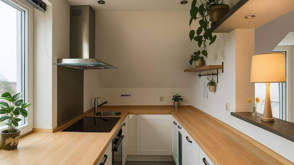 Der großzügige Wohnbereich bildet das Herzstück der Wohnung und vereint Wohnen, Essen und Kochen. Ein besonderes Highlight ist der Schwedenofen, der zusätzliche Gemütlichkeit schafft. Vom Wohnzimmer aus gelangen Sie sowohl in die offene, angrenzende Küche als auch direkt auf den sonnigen Südbalkon.