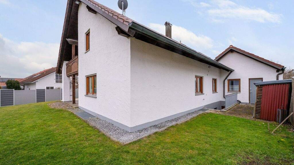 Großzügiges Wohnglück mit Weitblick: Ihr neues Zuhause mit individuellen Nutzungsmöglichkeiten Dieses gepflegte, freistehende Einfamilienhaus erstreckt sich über drei Etagen auf einem ca. 698 m² großen Grundstück und bietet Ihnen Raum für Ihre Wohnträume. Ob als weitläufiges Familiendomizil oder für das generationenübergreifende Wohnen - hier finden Sie die perfekte Balance aus Gemeinschaft und Privatsphäre. Das Herzstück des Erdgeschosses bildet das lichtdurchflutete Wohnzimmer: Edles Echtholzparkett und ein behaglicher Kachelofen sorgen hier für eine wohlige Wärme im Ess- und Wohnzimmer. Von hier aus gelangen Sie direkt auf die sonnige Südost-Terrasse. Die Küche überzeugt durch eine durchdachte Aufteilung und hochwertige Ausstattung. Ein besonderer Blickfang ist das angrenzende Esszimmer mit seinen verzierten Echtholzelementen und einer gemütlichen Erkersitzbank - der ideale Ort für das gemeinsame Familienessen. Abgerundet wird diese Etage durch ein Badezimmer mit Whirlpool-Wanne, einer geräumigen, ebenerdigen Dusche, einem Gäste-WC sowie flexible Räumlichkeiten, die sich hervorragend als Schlaf-, Kinder- oder Arbeitszimmer eignen. Über das Treppenhaus erreichen Sie die obere Etage, die durch eine separate, abschließbare Tür zusätzliche Diskretion bietet. Vier vielseitig nutzbare Zimmer, eine eigene Küche, ein Balkon in Süd- Westausrichtung und ein weiteres Badezimmer machen diesen Bereich zur perfekten Familienetage. Ein besonderes Highlight ist die offene Galerie sowie ein weiterer Balkon, welcher einen unverbaubaren Blick über die angrenzenden Felder bietet. Auch das Untergeschoss hält positive Überraschungen bereit: Zusätzlich zum Heizungskeller finden Sie hier eine private Wellness-Oase. Eine Massivholzsauna, eine ebenerdige Dusche und ein optionales Solarium verwandeln graue Wintertage in erholsame Auszeiten. Der Garten umrahmt das Haus und bietet dank einer praktischen Gartenhütte viel Platz für Hobbys und Gartengeräte.
