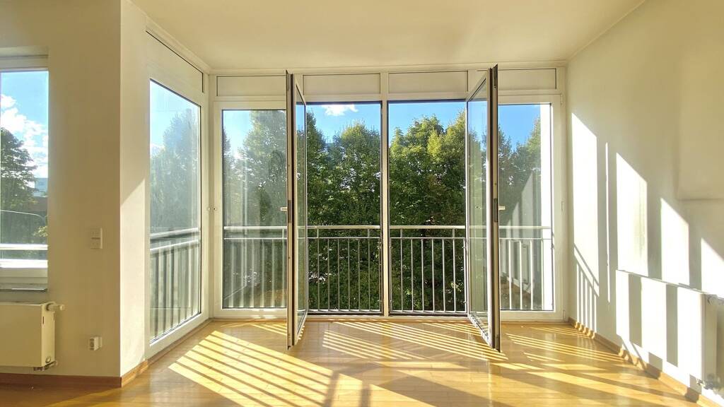 Vom zentralen Flur aus sind alle Räume separat zugänglich, was für ein offenes und praktisches Wohngefühl sorgt. Der großzügige Wohnbereich ist lichtdurchflutet und bietet ausreichend Platz für einen gemütlichen Wohn- und Essbereich. Besonders hervorzuheben ist das geräumige Schlafzimmer mit direktem Zugang zum Balkon - ein echter Rückzugsort in ruhiger Umgebung. Das Badezimmer ist zeitlos gefliest und verfügt über eine Badewanne - perfekt für entspannte Stunden. Ein innenliegender Abstellraum bietet nützlichen Stauraum - ein echtes Plus im Alltag.
