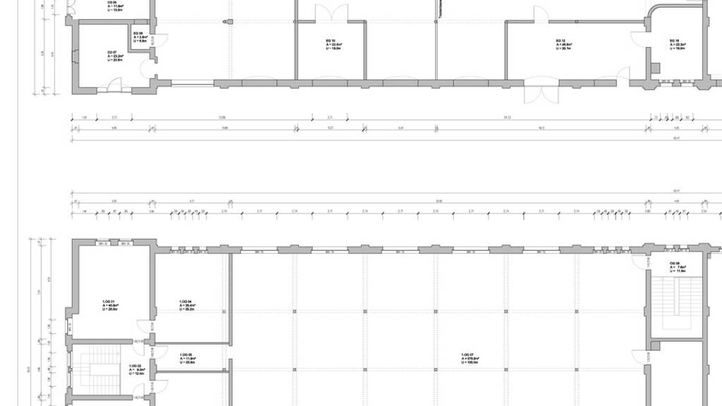 Beispielhaft bieten wir Ihnen hier eine Fläche von ca. 1.661m² im linken Gebäudeteil über zwei Etagen an.
