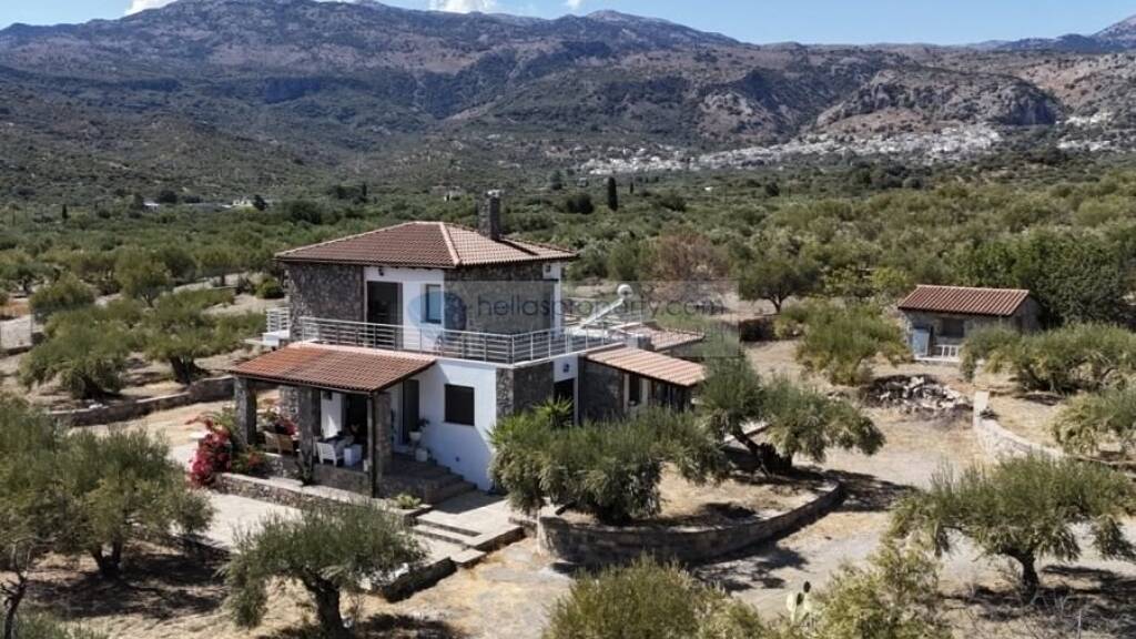 Moderne Villa mit Landhausflair und Natursteinfassade auf einem großen Grundstück nahe Elounda.
