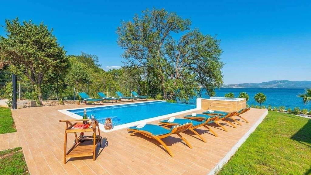 Croatia Zadar area waterfront villa for sale with pool offers complete privacy and is located in a picturesque cove surrounded by lush nature. The serene and peaceful setting ensures you can relax the moment you arrive.