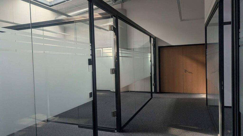Die Mietflächen gliedern sich in zwei Nutzeinheiten und bieten eine Vielzahl von größeren und kleineren Büros sowie Besprechungsräumen, ausgestattet mit hochwertigen Glastrennwänden.