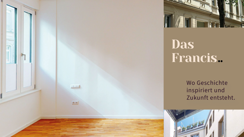 Das Francis - Wo Geschichte inspiriert und Zukunft entsteht. Entdecken Sie Ihr neues Zuhause, das mehr als nur ein Ort ist. In der Karlsruher Weststadt trifft traditionelles Erbe auf moderne Architektur und urbanen Lebensstil. Das Francis verbindet die Werte von Gemeinschaft und Geborgenheit mit individuell gestalteten Wohnräumen - für Singles, Familien und Co-Living-Konzepte. Die Grundrisse laden dazu ein, individuell interpretiert und mit Leben gefüllt zu werden. So entsteht ein Ort, an dem Geschichte lebendig bleibt, sich aber gleichzeitig für die Zukunft öffnet - für Menschen, die Wert auf Qualität, Atmosphäre und Gestaltung legen.