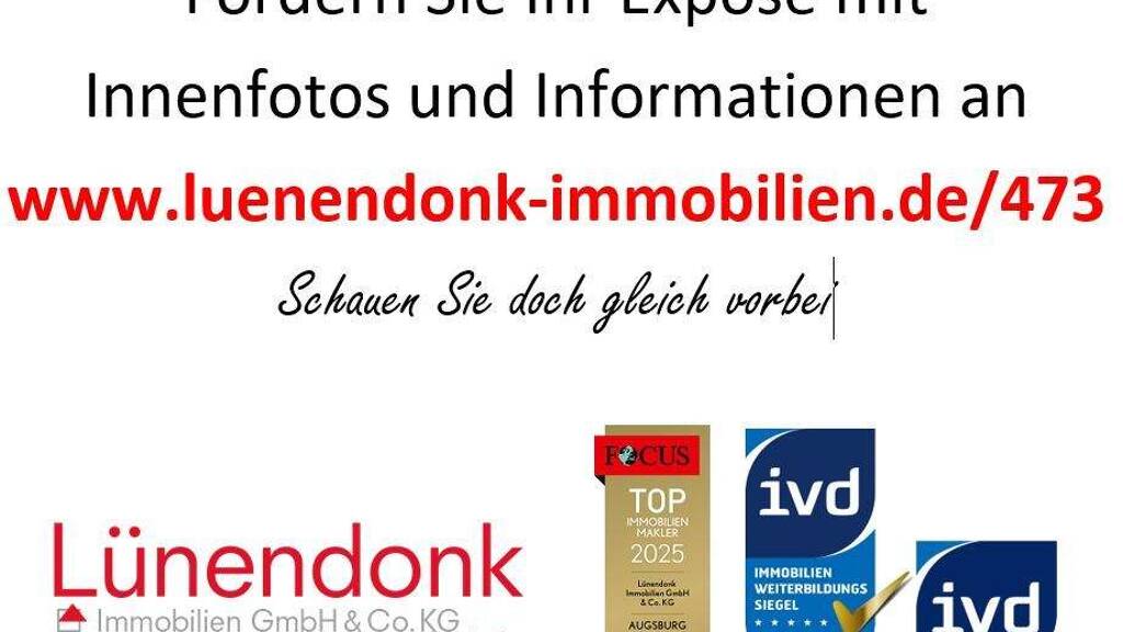 Wir weisen darauf hin, dass dieses Angebot für den Erwerber provisionspflichtig ist. Bei Abschluss eines Kaufvertrages bezahlt der Käufer Maklercourtage in Höhe von 3,20 % inkl. gesetzlicher MwSt. des beurkundeten Kaufpreises an Firma Lünendonk Immobilien GmbH & Co. KG, Hochfeldstraße 71 in 86159 Augsburg, verdient und fällig bei Vertragsabschluss. Das Angebot ist freibleibend, vertraulich und nur für den Empfänger persönlich bestimmt. Eine Weitergabe der Informationen ist nicht gestattet. Der Makler ist für den Vertragspartner / Verkäufer in gleicher Höhe provisionspflichtig tätig.
