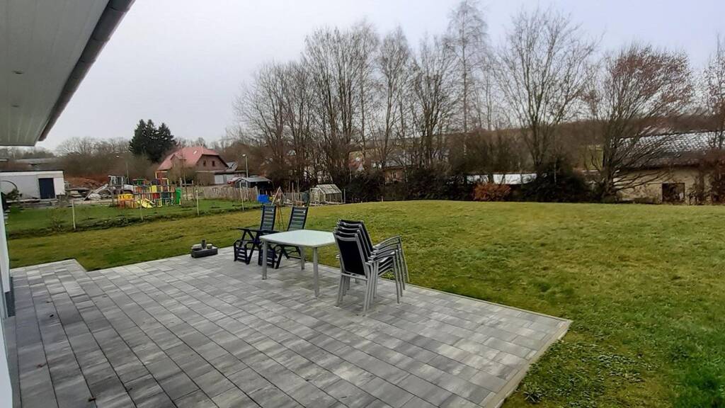 Dieses im Zeitraum 2023-2024 neu errichtete Einfamilienhaus steht für ein Zuhause, das sich dem Leben anpasst. Ob Familie, Mehrgenerationenwohnen oder Paare - die durchdachte Raumaufteilung sowie die großzügigen Innen- und Außenbereiche bieten maximale Flexibilität für unterschiedlichste Lebensmodelle. Auf einem ca. 816 m² großen Grundstück gelegen, verbindet das Haus modernes Wohnen mit viel Platz zur Entfaltung. Bereits beim Eintreten empfängt Sie ein freundlicher Flur mit praktischer Garderobennische. Das Haus verfügt über ein Gäste-WC, ein modernes Duschbad, einen Hauswirtschaftsraum, vier vielseitig nutzbare Zimmer sowie ein großzügiges Wohnzimmer mit offener Küche - der zentrale Treffpunkt für Alltag und besondere Momente. Ein besonderes Highlight ist der ebenerdige Zugang über eine Hebe-Schiebanlage vom Wohnbereich auf die große Terrasse und den weitläufigen Garten. Hier genießen Sie Sonne, Ruhe und Freiraum - ideal für Familie, Gäste oder entspannte Stunden im Grünen. Auch im Außenbereich überzeugt die Immobilie mit außergewöhnlichem Platzangebot: .Separater Stellplatz für Anhänger, Wohnwagen oder Wohnmobil .Große Stellfläche mit 4 weiteren Parkplätzen .Option für Großgarage oder Großcarport .Leerrohre zu den Stellplätzen sowie Dachzugänge für eine Photovoltaikanlage bereits vorbereitet - ein klarer Blick in die Zukunft Dieses Haus vereint Neubauqualität, durchdachte Planung und nachhaltige Vorbereitung zu einem Zuhause, das nicht nur heute, sondern auch morgen überzeugt. Einziehen, ankommen und bleiben - ein Haus fürs Leben.