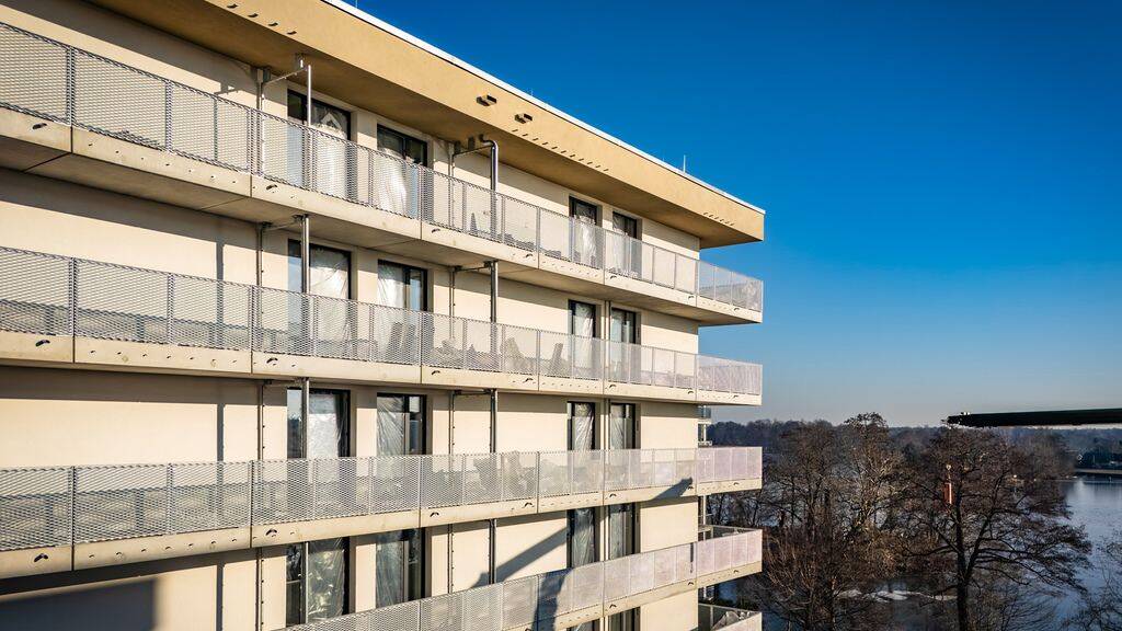 Fertigstellung des Neubaus ist Mai 2026 - vor Ort werden nur Musterwohnungen gezeigt.