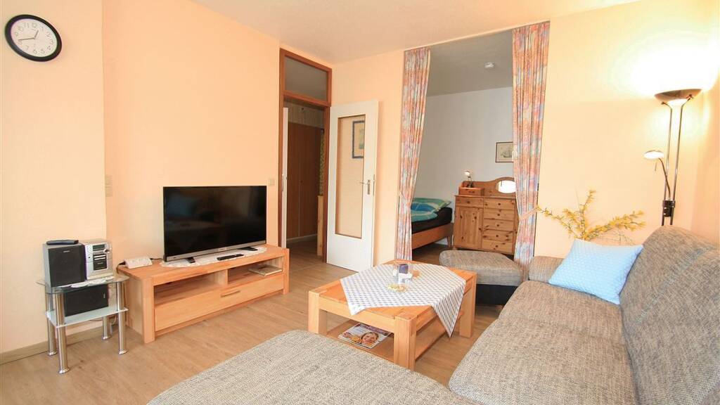 Diese gemütliche Ferienwohnung mit Balkon liegt im 8. OG des Ferienpark in Heiligenhafen. Sie bietet einen herrlichen Blick über den parkähnlichen Innenhof gen Norden auf die Ostsee und Teile des Binnensee. In den Sommermonaten bietet diese Lage den Vorteil, dass sich die Wohnung nicht übermäßig aufheizt.