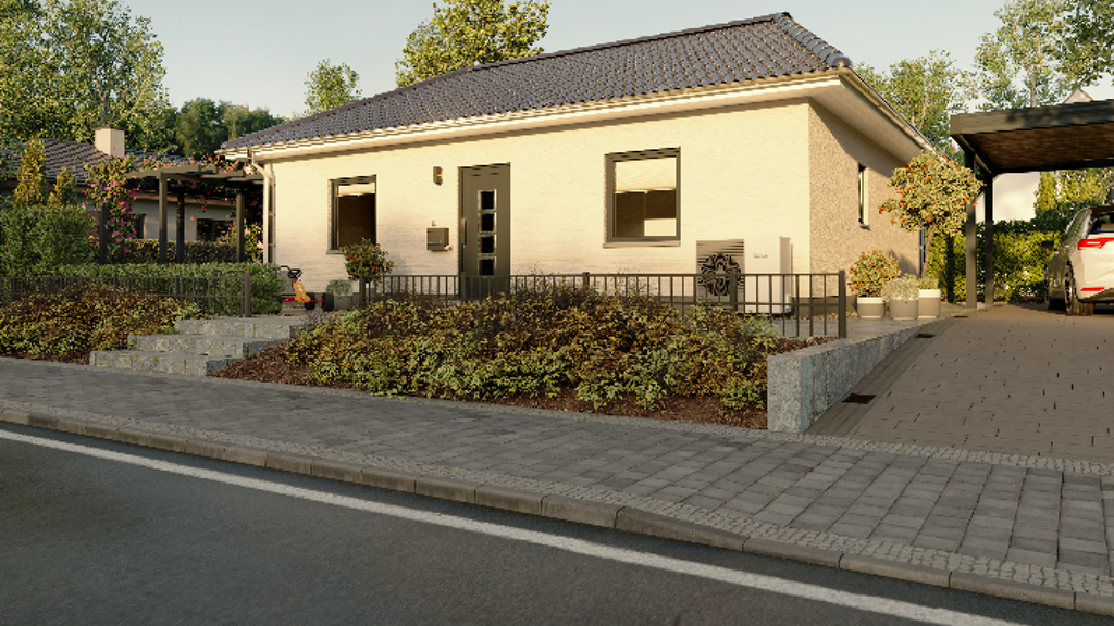 Auf rund 78 Quadratmetern finden Sie dank cleverer Planung ausreichend Platz für die ganze Familie. In den hellen, großzügig geschnittenen Zimmern wohnen Sie auf einer Ebene mit der Natur. Ob Wohnzimmer, Küche oder Schlafzimmer - überall sind Sie nur einen Schritt von Ihrem Garten entfernt.