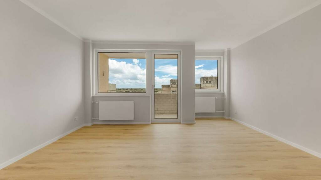 Die 2-Zimmer-Wohnung liegt im 8. Obergeschoss eines Mehrfamilienhauses mit Personenaufzug.