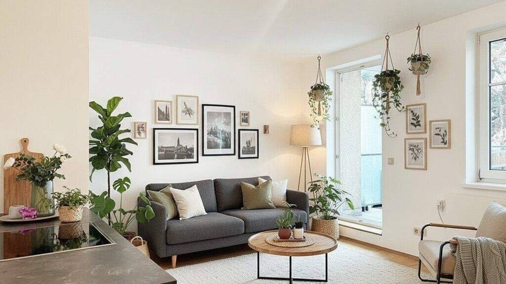 Hinweis: Einige der Bilder wurden mit KI generierten Möbeln und Dekoration ausgestattet - diese sind gekennzeichnet und sollen der Inspiration dienen! Die Wohnung wird bis auf die Küche unmöbliert verkauft!