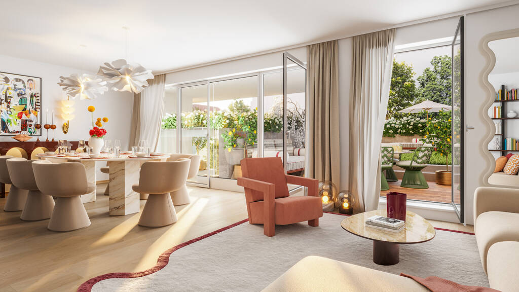 Der Grundriss dieser Wohnung wurde sorgfältig geplant, um Funktionalität und Wohnkomfort optimal zu kombinieren. Der helle und offene Wohn- und Essbereich mit Blick ins Grüne kombiniert Funktionalität und Wohnkomfort. Die Fensterfronten sorgen für eine freundliche Atmosphäre und heben den Blick auf die wunderschön begrünte Terrasse und Garten.