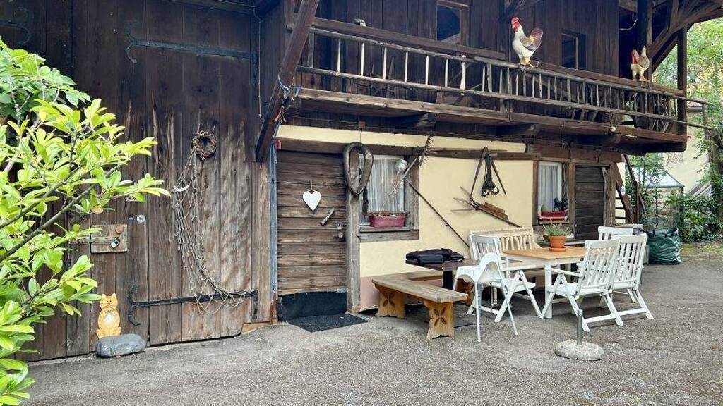 Hinter dem Haus befindet sich eine große Scheune . Die Wohnung kann für € 580.000 auch mit Scheune gekauft werden.