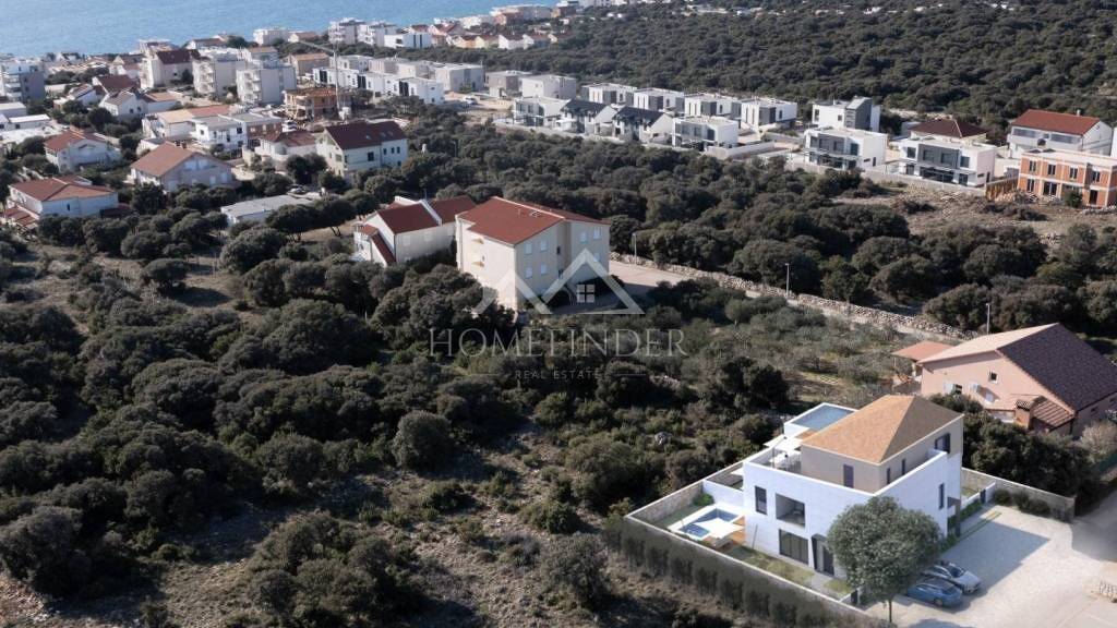 ZU VERKAUFEN - Luxuriöse Erdgeschosswohnung mit privatem Pool, Garten und Meerblick - Mandre (Insel Pag) Neubau - 84,5 m² - 2 Parkplätze - Einzug 06/2026 Wir bieten eine exklusive Erdgeschosswohnung in einem Neubau mit privatem Pool, großem Garten (145,5 m²) und wunderschönem Meerblick in Mandre, in ruhiger Lage, ideal für den Urlaub oder das ganzjährige Wohnen. Das Gebäude besteht aus nur vier Wohneinheiten, was Privatsphäre und Ruhe garantiert und gleichzeitig einen hohen Baustandard und modernes Design bietet. Eckdaten: Wohnfläche: 84,5 m² Privater Garten: 145,5 m² Etage: Erdgeschoss Standort: Mandre, Insel Pag Anzahl der Wohnungen im Gebäude: 4 Privater Pool 2 Parkplätze im Preis inbegriffen Baubeginn: September 2025. Voraussichtlicher Einzugstermin: 1. Juni 2026. Wohnfläche: Wohnfläche 40,1 m2 Flur 4,2 m2 Schlafzimmer 1 15,7 m2 Badezimmer 6,4 m2 Schlafzimmer 2 13,2 m2 Badezimmer 4,9 m2 Gesamt: 84,5 m2 Außenbereich Garten mit Terrasse und Swimmingpool 145,5 m2 Inhalt und Ausstattung: Fußbodenheizung in der gesamten Wohnung - angenehme Wärme ohne sichtbare Heizelemente Klimaanlage in jedem Zimmer und im Wohnzimmer Automatische Jalousien - Funktionalität und Sonnenschutz Dreischichtiges Glas - hervorragende Schall- und Wärmedämmung Glaswände mit Aluminiumprofilen - viel Licht, offener Raum 10 cm Wärmedämmung (Styropor) - hervorragende Energieeffizienz Renoviert Badezimmer - mit hochwertigen Fliesen und modernen Sanitäranlagen Keramikfliesen in der gesamten Wohnung - Eleganz und einfache Pflege Besonderheiten: Privater Pool - direkt vom Wohnzimmer und Garten aus zugänglich Großer Garten (145,5 m²) - ideal für Privatsphäre, Sonnenbaden, Grillen, Kinderspielen Meerblick - vom Wohnbereich und Hof aus 2 private Parkplätze Hochwertiger Neubau - modernes Design, funktionale Aufteilung Perfekt für Familie, Urlaub oder Vermietung Lage: Mandre ist ein bekannter Familien- und Touristenort auf der Insel Pag mit klarem Meer, gepflegten Stränden und Promenaden, ideal für alle, die Ruhe und Lebensqualität suchen. In der Nähe befinden sich Geschäfte, Restaurants, Cafés und alles, was Sie für den Alltag oder Urlaub brauchen. Dies ist eine einmalige Gelegenheit, eine Luxuswohnung mit privatem Pool und erstklassiger Ausstattung an einem der schönsten Standorte an der Adria zu kaufen. Für weitere Informationen kontaktieren Sie uns! Kontakt: Kristian Mikec (Ausbildungsmitarbeiter) E-Mail: info@homefinder.hr Mobil: 095 299 9996 www.homefinder.hr