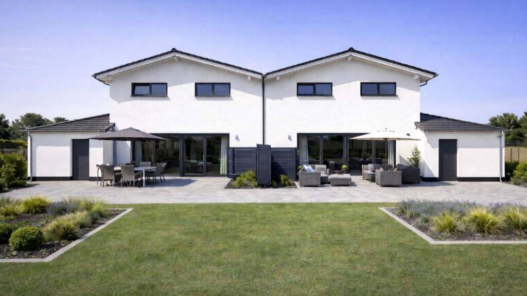 Die Häuser verfügen über eine großzügige Wohnfläche von ca. 130 m², verteilt auf fünf gut durchdachte Zimmer. Jedes Objekt bietet damit ausreichend Raum für individuelle Wohnkonzepte - ob für Paare, Familien oder Menschen mit dem Wunsch nach einem flexiblen Homeoffice-Bereich.