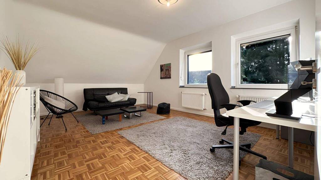 Diese voll möblierte und hervorragend ausgestattete Zweizimmer-Wohnung liegt im Dachgeschoss eines charmanten Dreiparteienhauses, das von den Vermietern selbst bewohnt wird. Sie eignet sich optimal für temporäre Aufenthalte, Projektmanager und Berufspendler, die nach einer unkomplizierten und flexiblen Wohnmöglichkeit suchen.