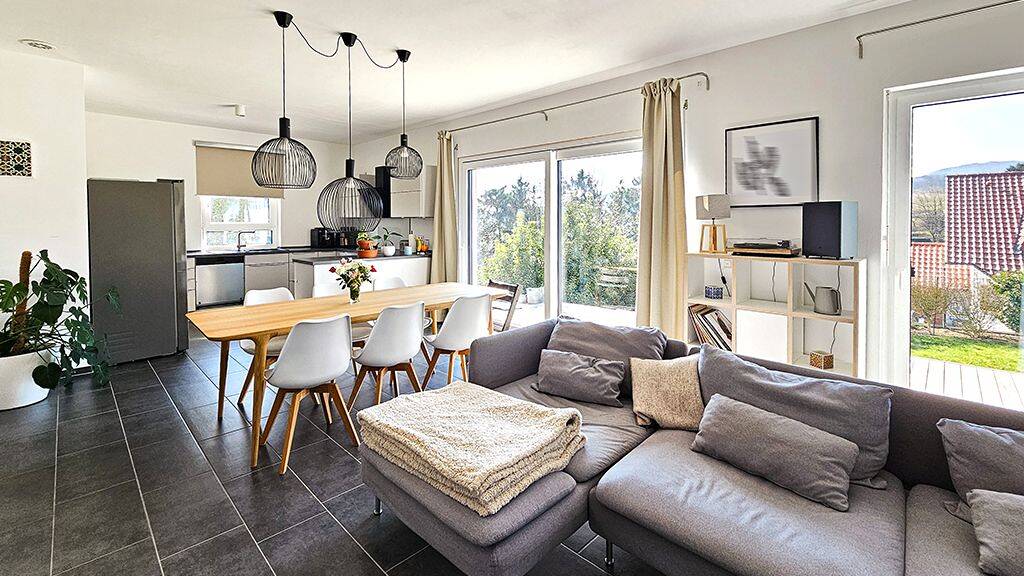 Das repräsentative Einfamilienhaus wurde 2018 in einer bevorzugten und naturnahen Ortsrandlage von Oberdürenbach errichtet. Es besticht mit einer durchdachten Raumplanung, großen Fensterflächen sowie hochwertigen Materialien und Ausführungen.