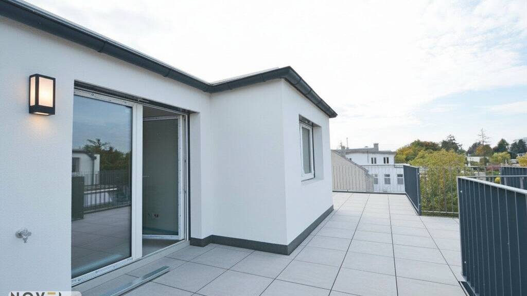 Diese Dachgeschoss-Wohnung überzeugt durch eine klare Raumstruktur und ein großzügiges Freiflächenangebot. Der Vorraum empfängt Sie mit Platz für Garderobe und Stauraum und führt direkt in die helle Wohnküche, die als zentraler Treffpunkt zum Kochen, Essen und Entspannen einlädt. Zwei gut geschnittene Zimmer bieten flexible Nutzungsmöglichkeiten - ob als Schlafzimmer, Kinderzimmer, Gästezimmer oder Homeoffice. Das Badezimmer mit WC ist modern ausgestattet und sorgt für Komfort im Alltag. Eine separate Garderobe schafft zusätzlichen Stauraum und Ordnung. Das absolute Highlight ist die große Dachterrasse, die den Wohnraum ins Freie erweitert und einen privaten Rückzugsort mit Weitblick bietet.