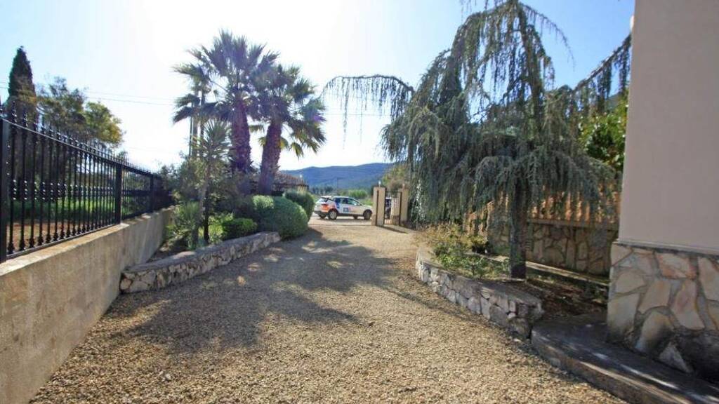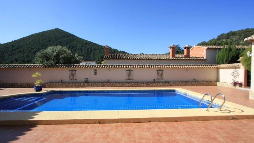 Schöne, private Villa mit drei Schlafzimmern in der Nähe des Dorfes Jalón zu verkaufen. Dieses geräumige, familiengeführte Haus befindet sich in makellosem Zustand auf einem flachen Grundstück und bietet Privatsphäre und Abgeschiedenheit. Dennoch ist das Dorf mit seinen zahlreichen Annehmlichkeiten nur wenige Minuten entfernt. Der Zugang zum Anwesen erfolgt über ein elektrisches Tor in einen mediterranen Garten. Die Villa verfügt über eine einladende Eingangsveranda und einen geräumigen Flur. Vom Eingangsbereich aus gelangt man links in das Hauptschlafzimmer mit begehbarem Kleiderschrank und großem Badezimmer. Von hier aus gelangt man auf die überdachte Terrasse mit Blick auf den Pool.