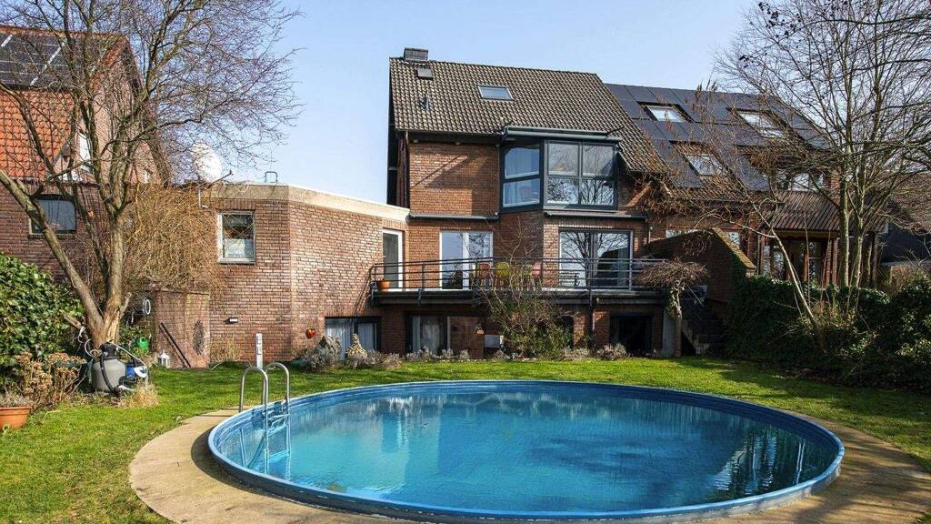 Unverbaubarer Blick ins Naturschutzgebiet, absolute Ruhe und ein außergewöhnliches Wohngefühl - dieses Haus vereint all das auf eindrucksvolle Weise. Ca. 250 m² Wohnfläche bieten großzügigen Raum für verschiedenste Lebenskonzepte und verteilen sich auf zwei abgeschlossene Wohneinheiten. Das Haus überzeugt nicht nur durch seine Lage, sondern auch durch seine Ausstattung: drei Außenstellplätze mit Wallbox, eine Doppelgarage sowie ein modernes Energiekonzept. Seit 2011 wurde die Immobilie durchgehend hochwertig modernisiert und ist seit 2023 unabhängig von fossilen Brennstoffen. Mit der Ergänzung einer Photovoltaikanlage lassen sich Nachhaltigkeit und dauerhaft niedrige Energiekosten ideal verbinden. Ob große Familie, Mehrgenerationenwohnen, Wohnen und Arbeiten unter einem Dach oder zusätzliche Mieteinnahmen - dieses Haus passt sich Ihren Bedürfnissen an. Besonders das Untergeschoss bietet mit der separaten Wohneinheit vielfältige Nutzungsmöglichkeiten, vom Büro bis zur eigenständigen Wohnung. Trotz der Doppelhausbauweise fühlt sich das Grundstück durch den freien Blick ins Naturschutzgebiet wie ein freistehendes Einfamilienhaus an. Im Garten genießen Sie Ruhe, Weite und Natur pur - ein echtes Highlight. Gleichzeitig erreichen Sie den Düsseldorfer Flughafen in nur ca. 20 Minuten. Beim Betreten des Hauses empfängt Sie im Erdgeschoss eine klassische Diele mit Gäste-WC. Das großzügige Wohnzimmer mit moderner Fußbodenheizung, hochwertigen Fliesen, Kaminofen und offenem Essbereich zur Küche schafft eine einladende, wohnliche Atmosphäre. Der Garten mit Pool bietet ideale Bedingungen für entspanntes Leben im Freien - Kinder können in der ruhigen Sackgasse unbeschwert spielen. Ein Ort zum Ankommen und Wohlfühlen. Im Obergeschoss stehen drei Schlafzimmer zur Verfügung. Besonders der unverbaubare Ausblick aus dem Elternschlafzimmer ist schlicht unbezahlbar. Das ausgebaute Studio wird derzeit als Fitnessraum mit Ankleide genutzt, eignet sich aber ebenso hervorragend als Homeoffice, Kinderzimmer oder Gästezimmer. Über einen separaten Eingang erreichen Sie die Wohneinheit im Untergeschoss mit zwei Zimmern, Bad und eigener Terrasse. Auch hier sorgen große Fensterflächen für viel Tageslicht. Die Einheit kann flexibel mit dem Haupthaus verbunden oder vollständig separat genutzt werden - ganz nach Bedarf.